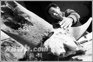 最近,郑晨学在渭河滩里收集了上百件犀牛、象牙、牛犄角,鹿角、野马等古化石。据了解,他准备将这些化石捐给国家。