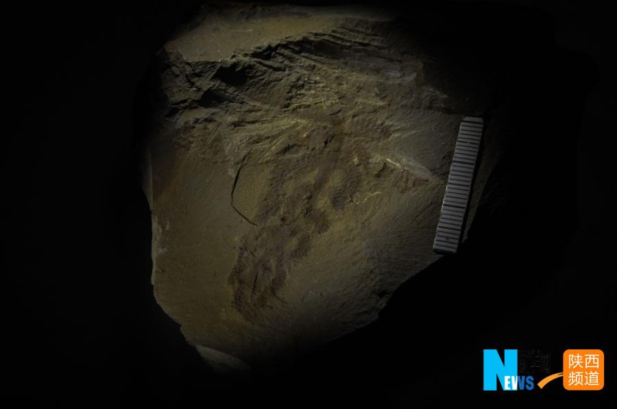 这是一块刘建妮发现的“仙人掌滇虫”化石(12月9日摄)。