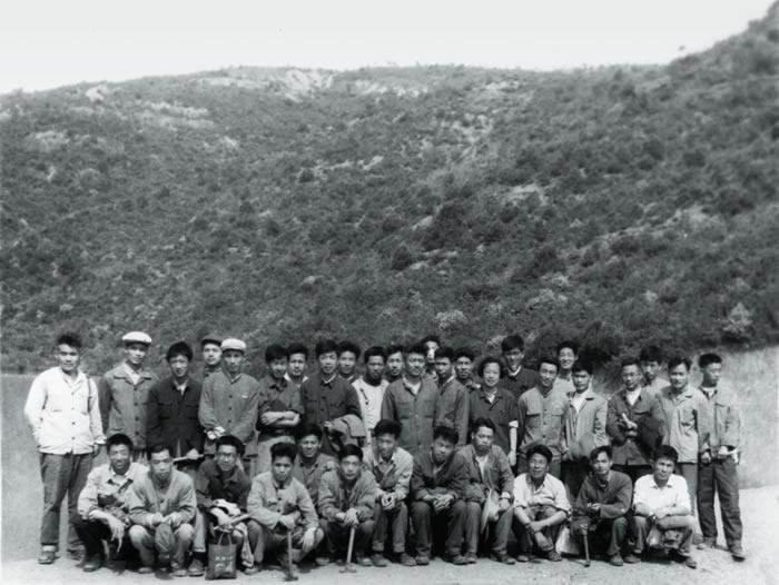 为了找化石,张弥曼(后排右九)与地质勘察队“跑野外”。她是队伍里唯一的女生。(张弥曼 / 供图)