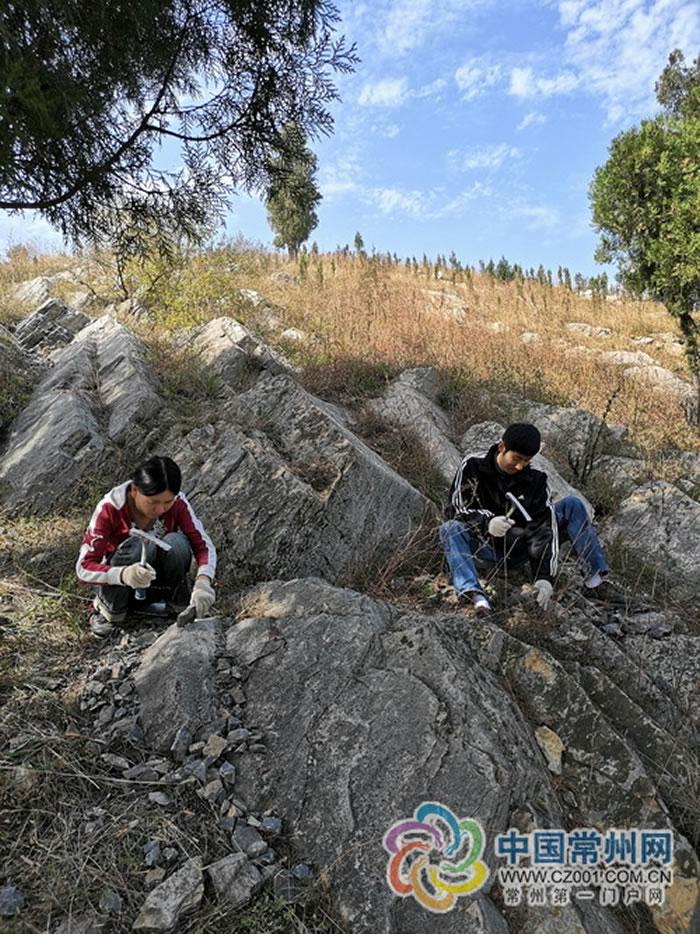10月26日上午,是这次野外课题研究的第一个“半日”,也是准备阶段。登上一个小山头,已经可以把小县城尽收眼底,雷倩萍带着记者环视一周,介绍道:“金坛的茅山主要是土山,而这里都是石头山,主要是种植一些松柏类树木,现在也开始种植一些色叶植物,比如黄栌和槭树。在4亿多年前,这里是一片浅海区域。”