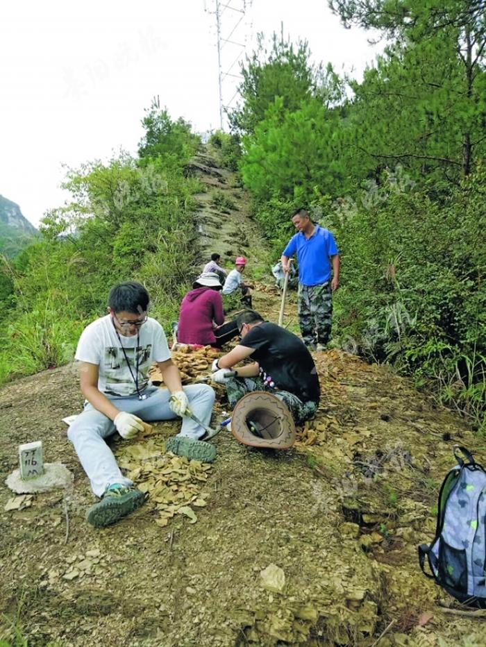 陈争鹏,贵州大学古生物学与地层学专业博士生,研究古生物化石已有近6年的时间。7月15日,在陈争鹏的带领下,记者随队来到距离贵阳市南约30千米处的青岩镇近郊雷打坡——著名的青岩生物群的产地。