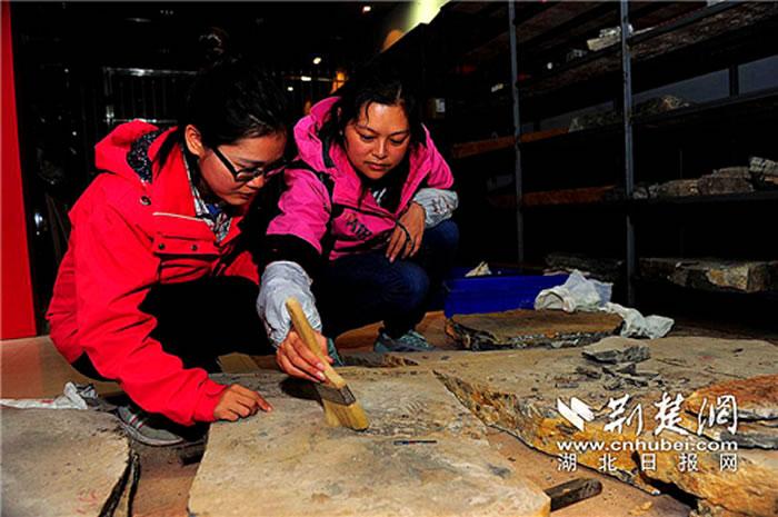 当地村民们经常见到的一幕是:李姜丽蹲守在化石坑里,用锤子、钻头、钢钎,一层层扒开岩层寻找线索。晚上回到野外基地后,工作还在继续:修复细针、刷子,把化石库房里的化石一点一点从围岩里“掏”出来,再用显微镜观察、绘图,记录信息。这些枯燥、艰苦、粉尘飞扬的工作,李姜丽一干就是5年,几乎每年都有大半年时间呆在远安的大山里。想念年幼的女儿,她只能每天晚上打开视频,听听女儿的声音。