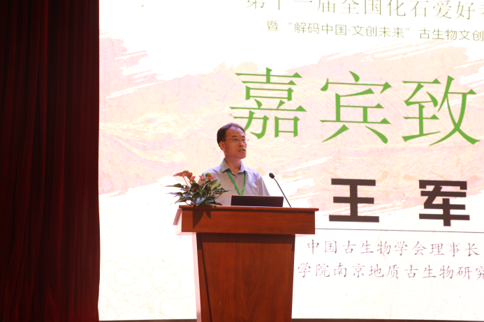开幕式由南京古生物博物馆馆长曹长群主持。王军在致辞中呼吁各方以更开放的姿态推进科普与文创的深度融合,并向广大化石爱好者致以由衷敬意。他指出,“好之者不如乐之者”,唯有发自内心的热爱,方能成为恒久而稳健的驱动力。王挺表示,本届大会是贯彻落实《科普法》的一项生动实践,广大爱好者既是化石资源的“科学守护者”,亦是科学文化的“创新传播者”。