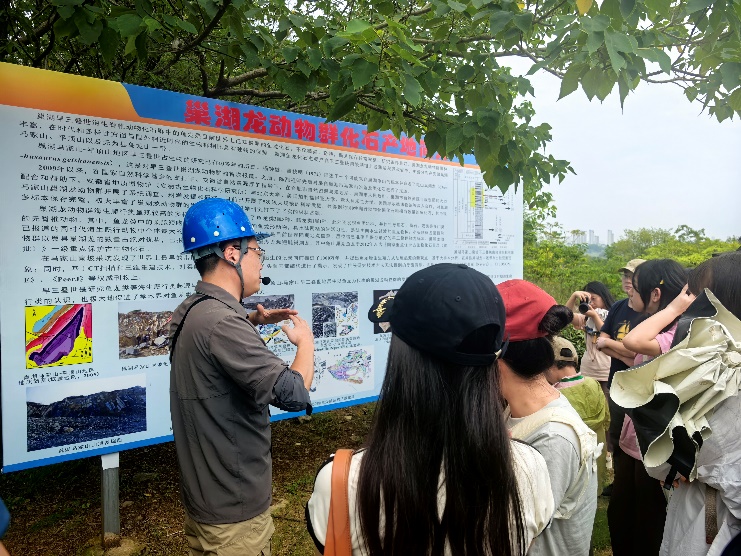 14日,由安徽省地质博物馆何学智博士和马兆亮博士带队,部分参会代表赴安徽省地质博物馆参观,并赴巢湖地区考察奥伦尼克阶底界金钉子候选层型剖面及巢湖龙动物群产地。大会期间还同步推出文创市集与专家鉴石活动,并举办了中国古生物学会教育教学分会2025学术年会。