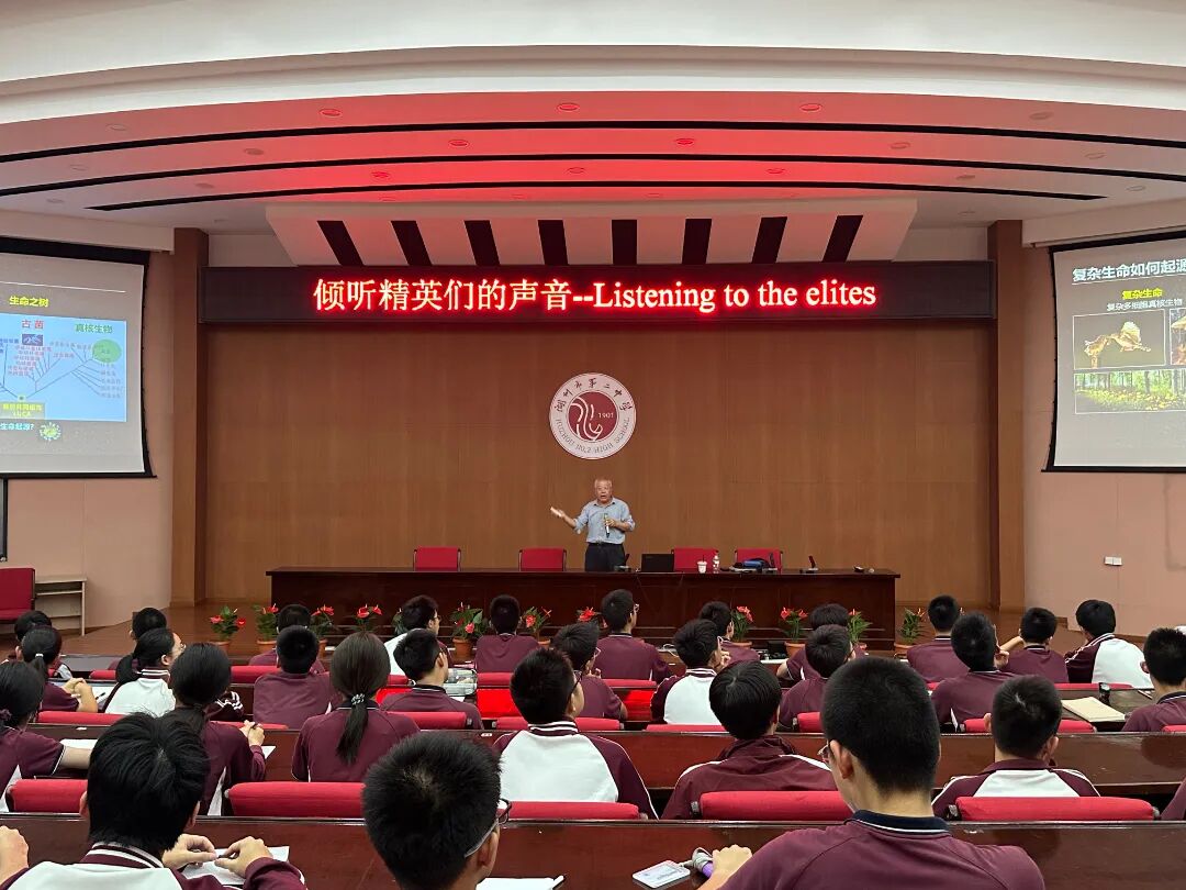 作为国际著名的地层古生物学家,也是中国最早研究寒武纪生物大爆发的专家之一,朱茂炎教授以“寒武纪大爆发”为题,围绕“什么是寒武纪大爆发?现代地球生物多样性是怎么样来的?复杂生命如何起源和进化?”等问题,逻辑清晰、深入浅出地带领现场同学一起寻找寒武纪生命大爆发的答案。他结合自身丰富的科研经历,分享了研究团队在云南澄江动物群化石发掘工作中的点滴故事,介绍了国际上关于寒武纪生命大爆发原因的各种假说,激发了同学们对科学探索的浓厚兴趣。