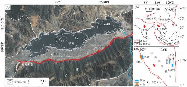 在我国云南,洱海、程海、抚仙湖等湖泊以及鹤庆盆地、宜良盆地等都是典型的拉分盆地构造,周围分布有很多城镇。