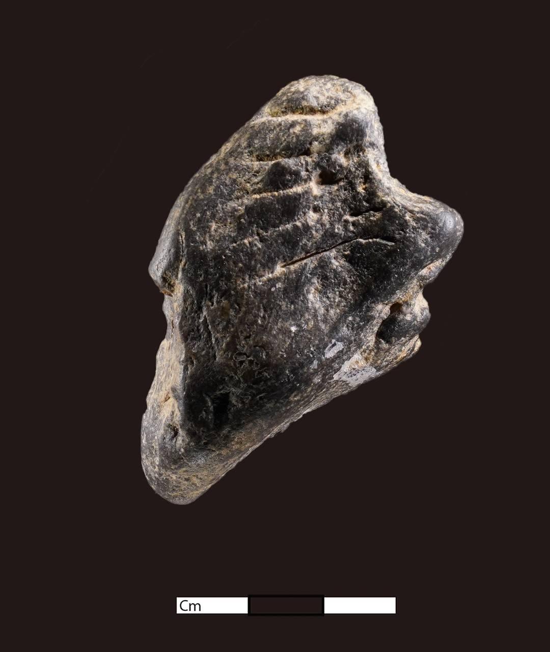 在众多带有刻划痕迹的遗物中,有一件长度仅4毫米的骨片存在疑似分界线的划痕。即在“分界线”的一侧为骨片的自然面,而另一侧分布有无规则的刻划线条。而在去年发现的另一件大小仅3.5毫米左右的骨片,表面带有11道近乎平行的刻划痕。即便是现代人,也很难在这么小的骨片上,划出如此多的痕迹。此外,遗址还出土了穿孔的骨片和橡果。“穿孔的行为比刻划更困难,因为要控制力量,要有相关的技术能力,可能还是一个相对持之以恒的工作。与刻划相比,这是更进一步的行为。”郑喆轩介绍道。
