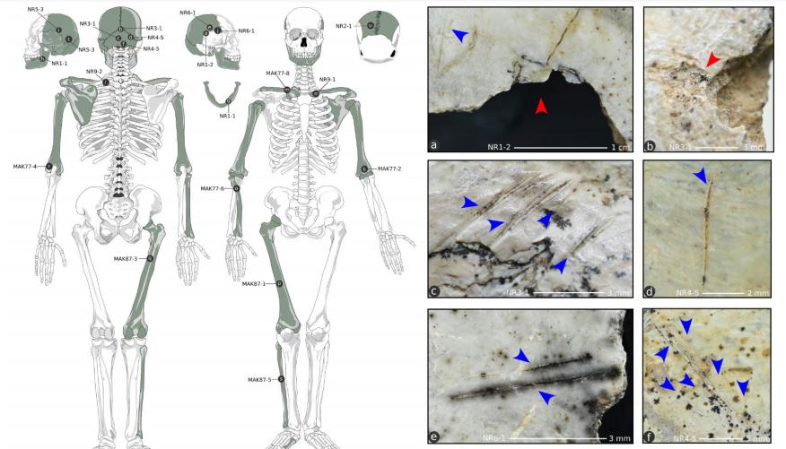 古人类颅骨的切割痕迹。图片来源:参考文献 [ 8 ]