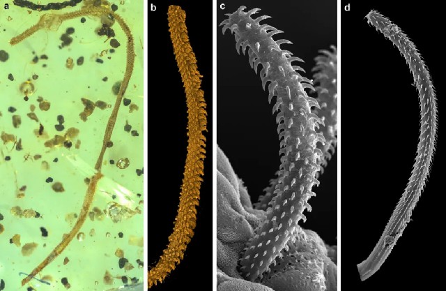 [1] Luo Cihang, Poinar G.O., Xu Chunpeng, Zhuo De, Jarzembowski E.A., Wang Bo, 2023. Widespread mermithid nematode parasitism of Cretaceous insects. eLife 12, e86283. https://doi.org/10.7554/eLife.86283