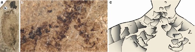 这枚化石的身体整体呈纺锤形,分成明显的三部分,即吻突、颈和躯干,看上去就像一个“狼牙棒”或者“马桶刷”。吻突具有硬化的、略向下弯曲的刺,身体上有约32对纵毛列,身体末端还有一个类似现生棘头虫雄性交合伞的结构。这些都是常见现生棘头虫的常见特征。乍看之下,它无疑是一只标准的棘头虫。但是,如果仔细观察,却会让人感到十分困惑,因为标本躯干最前方分布有大量齿状结构,即颚器。这些“牙齿”整体向前聚集,且前端较小,向后逐渐变大,齿的数量也随之增多。所有颚器的齿均朝向身体前方,且所有的颚都不超过身体边界。在所有现代棘头虫中,从未发现类似结构。