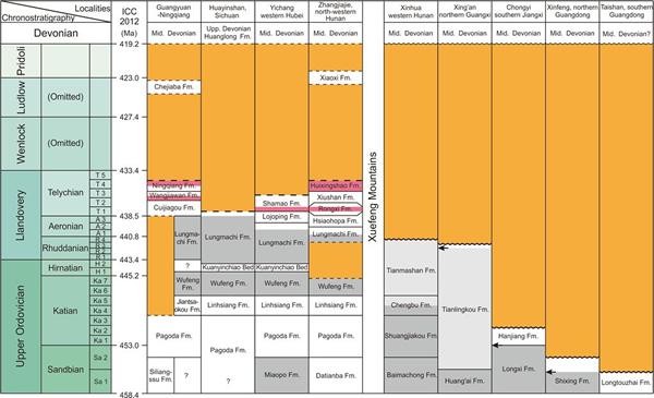 (化石网)据中国科学院南京地质古生物研究所:近期,中国科学院南京地质古生物研究所陈旭院士、樊隽轩研究员等在《中国科学 地球科学(英文版)》(Science China: Earth Sciences)发表封面文章“Toward a stepwise Kwangsian Orogeny”。文章通过对粤南、粤北、赣南、桂北至雪峰山东侧,泥盆系不整合面之下奥陶、志留系地层顶部岩相-生物相突变界面的详细的生物地层学研究,论述了广西运动从晚奥陶世开始至志留纪初,从东南向西北方向阶段性、阶梯式抬升的发展过程,及其此后对扬子地台的影响。