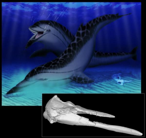 (化石网)据EurekAlert!:化石证据揭示,一个新发现的已灭绝的海豚物种拥有僵硬的下唇。这种物种就是Semirostrum ceruttii,以其发现者、美国圣地亚哥自然历史博物馆的Richard Cerutti的名字命名的。