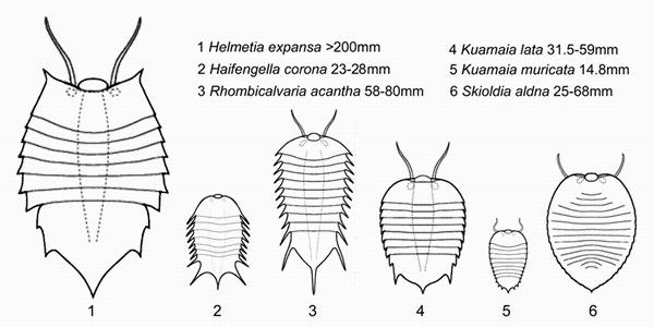(化石网)据中国科学院南京地质古生物研究所:澄江生物群中节肢动物无论物种分异度还是个体丰度都占据主导地位,至今已报道的节肢动物超过80种,占到澄江生物群物种数量的近40%,记录了节肢动物早期演化历程和多样性特征。然而在澄江生物群中有一类叫赫尔梅蒂类节肢动物(Helmetiids),其化石材料相对稀少,种类包括跨马虫(Kuamaia lata Hou, 1987; Kuamaia muricata Hou and Bergström, 1997);菱形虫( Rhombicalvaria acanthi Hou, 1987);谜虫(Saperion glumaceum Hou, Ramsköld and Bergström, 1991)和古盾形虫(Skioldia aldna Hou and Bergström, 1997)。这类节肢动物在系统发育分析中被认为与三叶虫亲缘关系最为密切,从而引起古生物学者的研究兴趣。