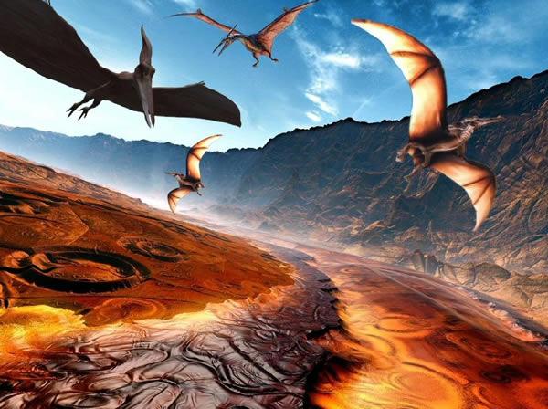 翼手龙是侏罗纪晚期的翼龙类,在分类上并不真正属于恐龙,而只是恐龙的近亲。它们是最早可以飞行的脊椎类动物,以昆虫为食,并可以在海上觅食鱼类。