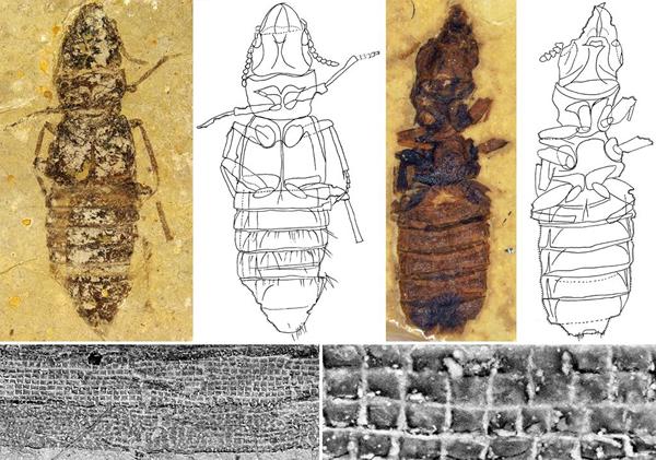 这两个化石是南京地质与古生物研究所的蔡晨阳博士研究生和黄迪颖研究员在内蒙古和辽宁两地发现的。经过扫描电子显微镜的观察,专家发现这两种小虫都是过去没有发现的隐翅虫新属种,有着特别大的上颚,成须的最后一节像斧头。