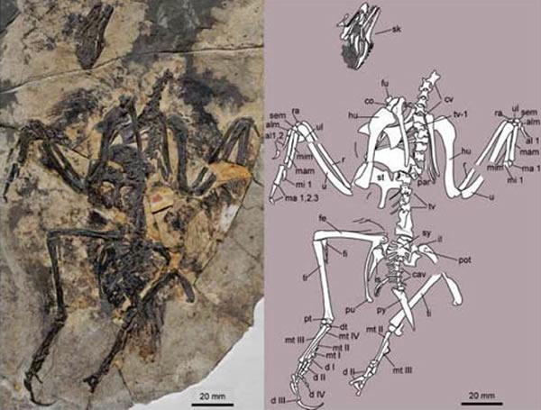 据研究人员介绍,这两个新属种与此前报道的渤海鸟(Bohaiornis)、神七鸟(Shenqiornis)、齿槽鸟(Sulcavis)和周鸟(Zhouornis)具有一些独特的形态特征,包括吻端粗壮、牙齿粗大并近似锥形、叉骨上升支的末端明显膨大、胸骨的后外侧突向外侧强烈偏转、跗蹠骨粗短、第三脚趾具有很长的爪子。
