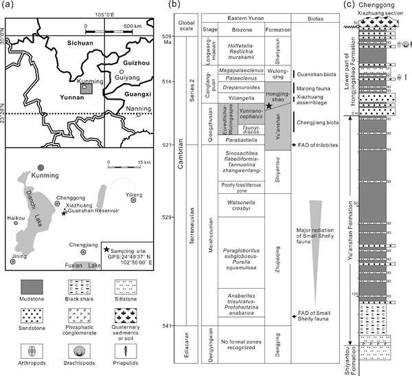 论文相关信息:Zeng Han, Zhao Fangchen*, Yin Zongjun, Li Guoxiang, Zhu Maoyan. 2014. A Chengjiang-type fossil assemblage from the Hongjingshao Formation (Cambrian Stage 3) at Chenggong, Kunming, Yunnan. Chinese Science Bulletin, DOI:10.1007/s11434-014-0419-y.