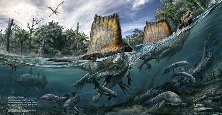 在棘龙生存的年代,如今的摩洛哥东部地区遍布湖泊、河流与三角洲。作为一个顶级捕食者,棘龙所处的生态系统中充满了巨大的鳄鱼、大型的锯鳐和汽车般大小的腔棘鱼。