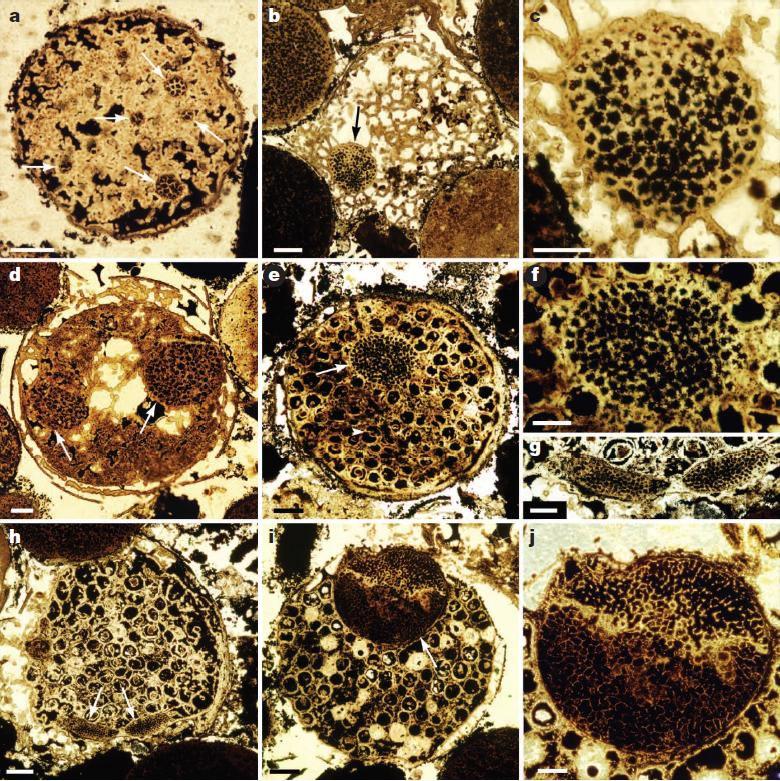 研究人员通过近千余片薄片观察,发现了数百余枚保存了内部微细结构的动物胚胎状化石。这些化石内部不仅具有以前报道的内部细胞分裂特征,内部细胞从1个至2n的球体都有发现,而且更重要的是,发现了以前从未见过的内部细胞具有分化的特点。从薄片中可以观察到,这些球状化石内部细胞分裂到数百个之后,出现了营养细胞和繁殖细胞的分化,并且繁殖细胞包裹在一个囊壳内,一直进行细胞分裂和生长,细胞数达到了数百数千个。这一特点显示了,以前文献中解释成节肢动物、腔肠动物、软体动物和海绵动物等冠群动物(crown group)的胚胎,以及团藻、中生粘菌虫、原生动物和硫细菌的说法都值得怀疑。从现在新发现的材料可以做出推断的是:它们确切地属于有细胞分化的多细胞真核生物,有可能是某种基干类群(stem group)动物,或者某种多细胞真核藻类。关于这类化石的研究还远未停止,未来的研究需要更多的证据才能做出更为明确的解释。