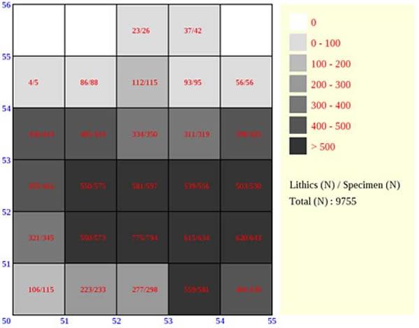 水洞沟遗址第7地点发掘区标本密度分布特点(裴树文供图)