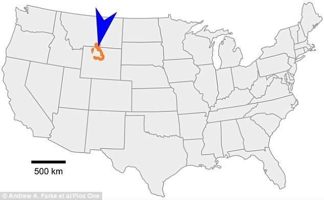 头盖骨出土于蒙大拿州,是北美大陆迄今发现的最早有角恐龙。橙色线表示蒙大拿和怀俄明大羊角盆地克罗夫利形成的露出部分。