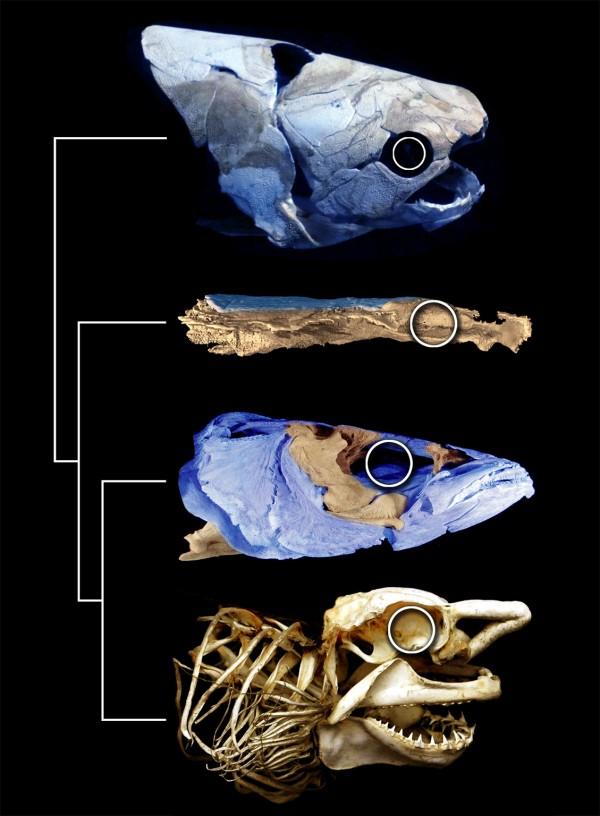 为了搞清这种鱼能够在哪里融入早期颌类脊椎动物的进化,研究人员使用了一种微CT扫描技术——类似于病人在医院中为了看清身体内部情况而采用的常规CT成像技术,从而在不破坏化石的前提下观察其1厘米长的头骨中的骨骼结构。
