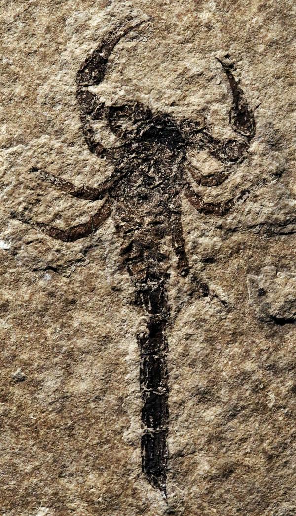 (化石网报道)据中国科学报(冯丽妃):蝎子的起源一直是个谜。对这种最古老的蛛形纲动物(该类动物包括现代蜘蛛、蜱虫、螨)的了解来自于距今4.38亿年前~4.33亿年前的苏格兰沉积岩化石,然而却只能略窥其轮廓。现在,加拿大安大略湖西南地区发现的保存完好且时间上仅略晚一些的化石表明,这种动物起源于海洋,而且它们爬上陆地的时间可能比科学家此前认为的早得多。