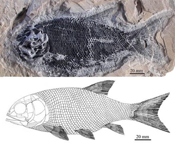 (化石网报道)据中国科学院古脊椎动物与古人类研究所:最新一期的《古脊椎动物学报》报道,中国科学院古脊椎动物与古人类研究所研究人员在贵州盘县三叠纪地层中发现近鲱形类(Halecomorphi)预言鱼目(Ionoscopiformes)新属种化石,命名为奇异盘县鱼(Panxianichthys imparilis)。该发现代表了预言鱼目最原始的属种,为研究近鲱形类的早期演化和生物地理提供了重要信息。
