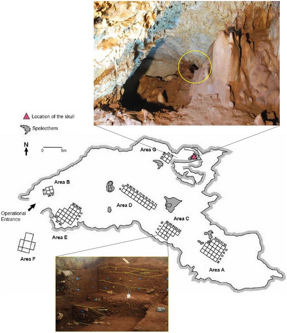 以色列西加利利Manot洞穴中发现距今大约5.5万年前的人类头骨碎片(化石网配图)