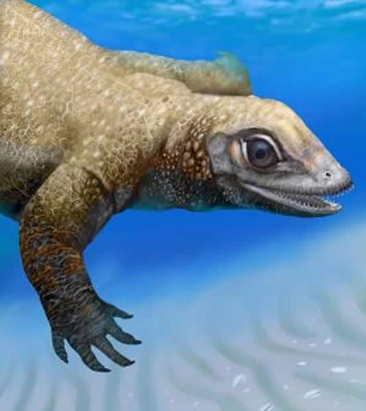 (化石网/歆塬 编译)楯齿龙(placodont)是地球上出现的第一批海洋爬行动物,它们那标志性的利齿使得它们能以贝壳和甲壳类动物为食,然而,它们从何时何地起源仍未可知,最近在荷兰发现了一具2.46亿年前的幼年楯齿龙头骨化石。楯齿龙曾在开阔平坦的特提期浅海区域(现今为欧洲和中国)繁盛了大约5000万年。它们的牙齿特征最为明显:上颚有两排平坦的牙齿,一排位于腭上,另一排位着颚骨上,而下颚则仅有一排牙齿,这样的牙齿结构极有利于咬碎壳类生物。苏黎士大学的古生物学家Torsten Scheyer联合来自瑞士和德国的研究者通过研究声称,发现于荷兰的这块头骨是目前已知最早的楯齿龙化石,它大约有两厘米大小,保存极为完好,其特征与之前发现的楯齿龙存在显著差异。