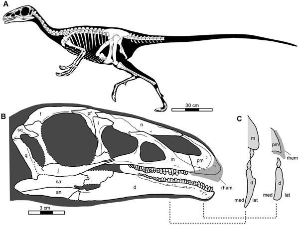 (化石网/兽王 编译)中国河南省地质博物馆的蒲含勇和日本北海道大学博物馆的小林快次等人在5月29日的《PLOS ONE》杂志在线发表了基干镰刀龙类(Therizinosauria)一个新属新种——义县建昌龙(Jianchangosaurus yixianensis),并且对于古生物学家重新认识镰刀龙类的解剖学和演化提供了重要的新的证据。