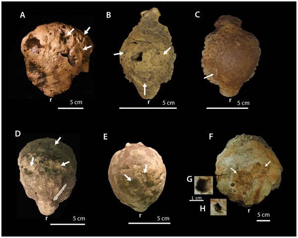 肿头龙科恐龙标本的颅骨损伤测图表明,虽然病变分布在整个圆顶状的头骨,但是它们群集在接近顶端的位置,这是和圆顶状的头骨的功能是种内斗争的假设一致。(化石网uua.cn/兽王 编译)2013-08-07