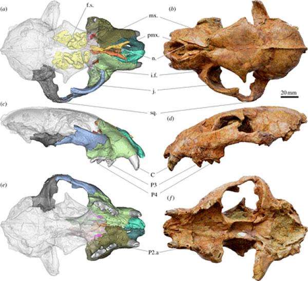 美国南加州大学生物科学系(Department of Biological Sciences, University of Southern California)的Z. Jack Tseng等人在11月13日的英国《皇家学会报告B:生物科学(Proceedings of the Royal Society,Series B: Biological Sciences)》杂志上在线发表了一篇题为《喜马拉雅山脉的已知最古老的豹属化石确立的大猫的起源(Himalayan fossils of the oldest known pantherine establish ancient origin of big cats)》的研究报告,这篇研究报告命名了食肉目(Carnivora Bowdich, 1821)猫科(Felidae Fischer, 1817)豹亚科(Pantherinae Pocock, 1917)豹属(Panthera Oken, 1816)的一个新种——布氏豹(Panthera blytheae sp. nov.),布氏豹和雪豹密切相关,为豹亚科的亚洲起源提供了强大的证据支持分析表明,豹亚科谱系的75%的分化的事件延伸到距今大约7000000年前的中新世,比以前估计的早。
