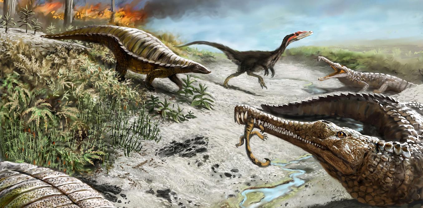 气候与植物群落的不稳定性可能妨碍了恐龙在三叠纪热带区域的成功(化石网配图 Victor Leshyk, Author provided)