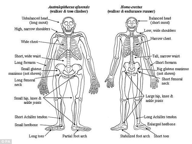 早期人类祖先阿法南猿和后来的直立人之间的物理差异(化石网配图)