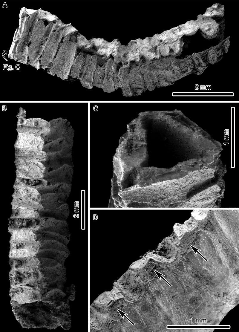 (化石网报道)据中国科学院南京地质古生物研究所:Sinotubulites是埃迪卡拉纪晚期的一类直管状化石。它最早发现和命名于我国湖北三峡地区,后来在美国、墨西哥相继被发现,最近在西班牙也发现了该类化石。越来越多的化石产地表明该类化石具有广泛的古地理分布。因此,它能为埃迪卡拉系的划分和对比提供重要依据,从而成为继新元古代末期最早骨骼生物Cloudina之外的又一类重要标准化石。