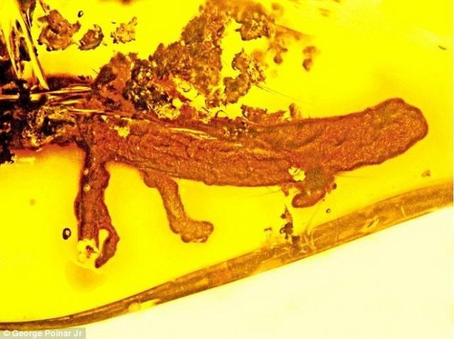 他们指出,这只生命短暂的蝾螈被命名为“Palaeoplethodon hispaniolae”,在2000万年前,它与掠食者的争斗中失去了腿部,当它奋力逃脱时,却不幸被树脂包裹起来,永久地保存在琥珀之中。