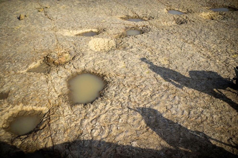 其中长颈恐龙的脚印直径可达1.2米,有50米长。长颈恐龙生活在1.4亿年前的上侏罗纪时期,体重达25至30吨,能够长到27米长。