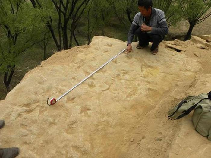 而临沂大学兼职研究员唐永刚则表示,如果确实如此,那当地人注意到足迹化石的时间就非常早了。而当地人对足迹化石的态度也印证了这一点,村民们将足迹化石当作普通石材使用,随处可见。“比如在王庄村和龙尾峁村,这些化石出现在了撵子、磨盘、围墙、牲畜的食槽等处。大家对待这些化石都非常随意,丝毫没有觉得它们有什么特别的。”邢立达如是说。