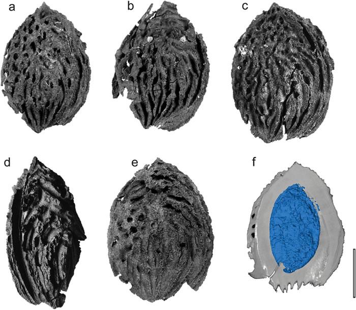 这些核桃作为植物种子能够保存为化石,又如此完整,实属不易。中国科学院西双版纳热带植物园古生态组的研究人员和美国宾夕法尼亚州立大学、昆明理工大学合作,将这几枚小小的桃核进行CT扫描,三维重建了桃核化石的结构。另外,扫描电镜也应用于桃核化石的微观形态研究中。