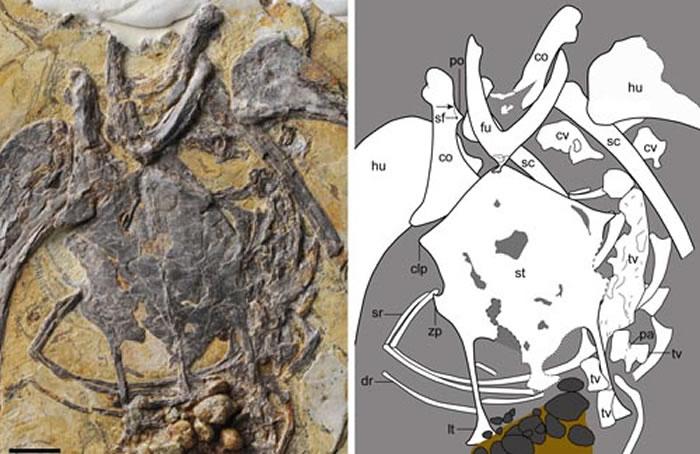 直爪丽鸟肩带骨骼和胸骨(王敏供图)