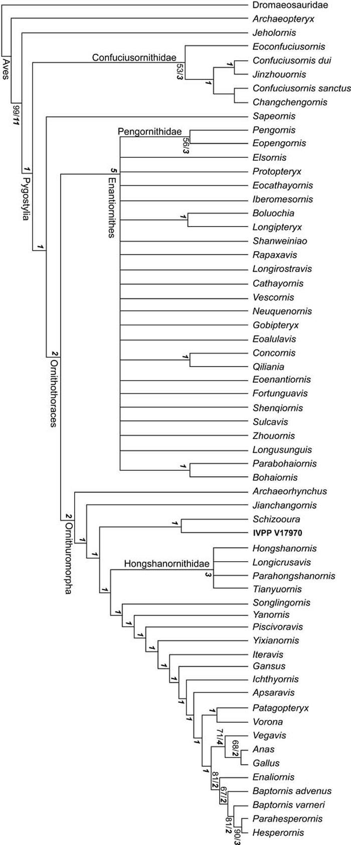 (化石网报道)据中国科学院古脊椎动物与古人类研究所:2016年1月5日,伦敦林奈学会出版的《林奈学会动物学杂志》(Zoological Journal of the Linnean Society)上,中国科学院古脊椎动物与古人类研究所的王敏、周忠和、周爽发表了题为“A new basal ornithuromorph bird (Aves: Ornithothoraces) from the Early Cretaceous of China with implication for morphology of early Ornithuromorpha”的文章,报道了一基干今鸟型类,讨论了原始今鸟型类特征的演化。