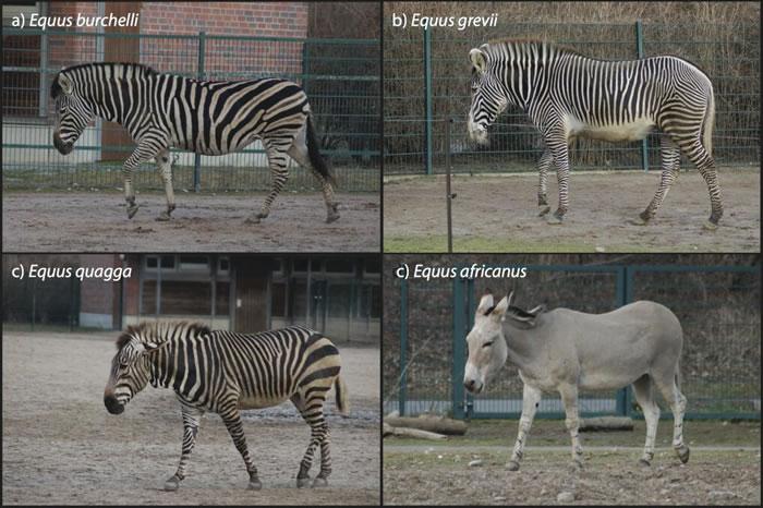 动物园中各种斑马类动物,分别是:平原斑马,山地斑马,细纹斑马和非洲野驴