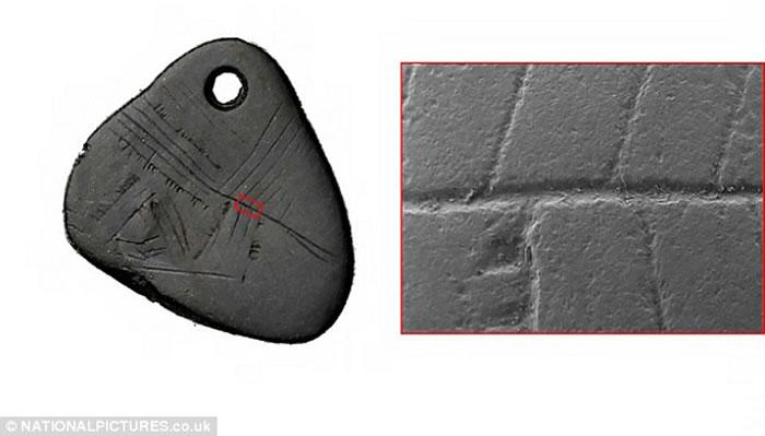 英国已知最早的中石器时代艺术作品:页岩垂饰上雕刻有线形图案(化石网配图)