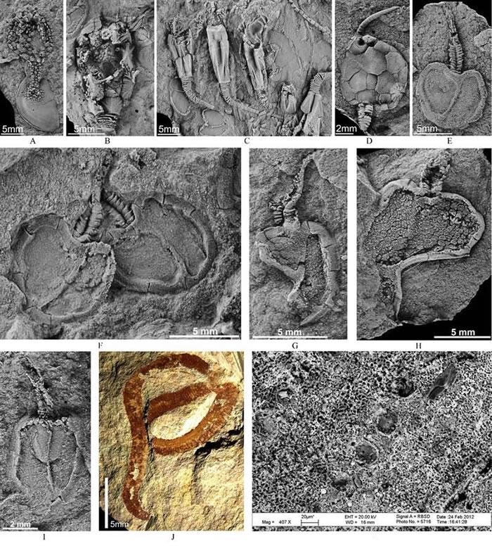 果乐生物群主要组成分子(A-I为棘皮动物,J-K为蠕形动物)
