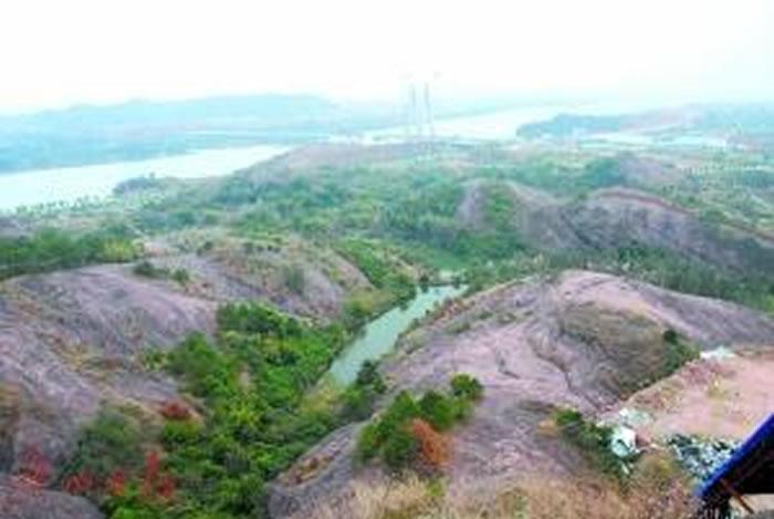 在河源市区迎客大桥西边发现虫迹化石之地。