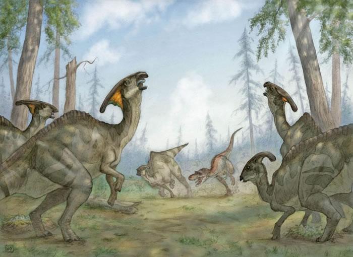 鸭嘴龙的颚骨和牙齿适合咀嚼松果、松针等坚硬食物,这种生活习性帮助它们在多次恐龙进化事件中顽强地生存下来。