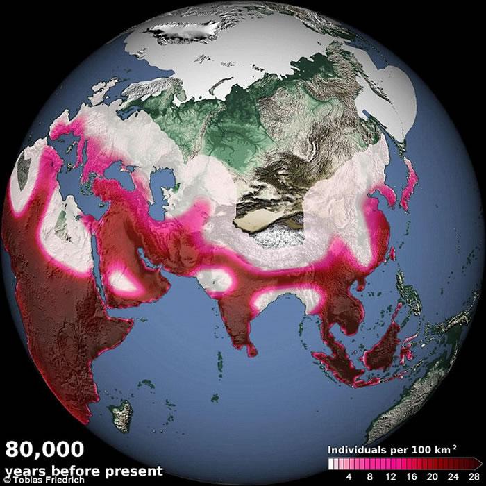 研究人员发现,在距今10.6万年—2.9万年中的四个时间段中,非洲东北部、阿拉伯半岛和地中海东岸降雨量的周期性增加使得该地区成为了适宜人类居住的绿色走廊。蒂默曼表示:“这为现代人祖先离开非洲东北部,前往欧亚大陆、澳洲和美洲的大规模迁移创造了条件。如果过去12.5万年间气候一成不变,那么我们将以一个非常不同的方式进化。”