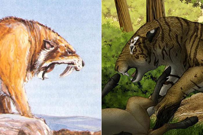 恐剑齿虎与刃齿虎(Michael Long绘)口部开启程度的对比 (邓涛供图)