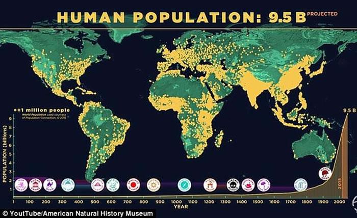 而在1300年到1400年间,由于黑死病横行,人口数量出现了罕见的下降。1700年时,人口数量仅有5.9亿。但不久之后,“现代科技和医学迅速发展”,加上工业革命的到来,人口数量开始飙升。1800年,全球人口数量已经达到了10亿。仅仅过了200年,如今地球上的人口数量已经超过了72亿。专家认为,如果世界人口继续保持目前的发展趋势,到了2100年前后,人口数量将突破110亿。